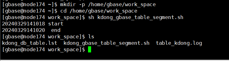 sh kdong_gbase_table_segment.sh