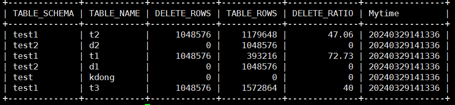 sql_kd="use performance_schema;select TABLE_SCHEMA,TABLE_NAME,DELETE_ROWS,TABLE_ROWS,DELETE_RATIO,$Mytime from TABLES where table_schema='${dbname}' and table_name='${tbname}'"