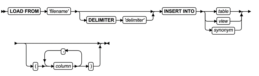 数据库服务器直接地从 LOAD FROM 文件装入简单大对象(BYTE 和 TEXT 列)。LOAD语法图如下图所示: