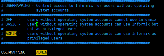 (备节点需要手动修改/home/gbasedbt/gbase/etc/onconfig.gbaseserver文件,使用vi打开编辑,查询到USERMAPPING参数,修改成ADMIN即可,如下图,保存退出即可)