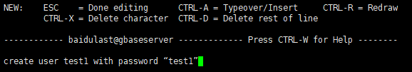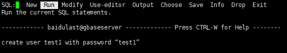 执行:create user test1 with password “test1”(此处设置password与系统passwd设置的保持一致,默认数据库用户密码与操作系统passwd密码为基准)