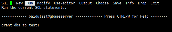 执行:grant dba to test1,如下图所示