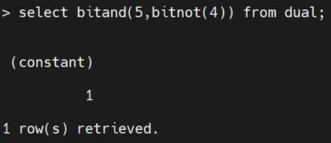 select bitandnot(5,4) from dual; --返回1