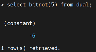 select bitnot(5) from dual; --返回-6