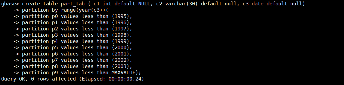 create table part_tab ( c1 int default NULL, c2 varchar(30) default null, c3 date default null)