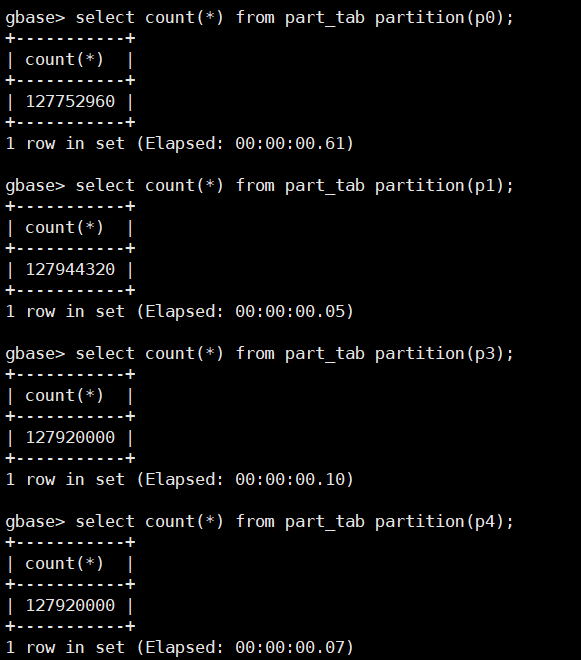 南大通用Gbase 8a MPP Cluster 表分区性能测试