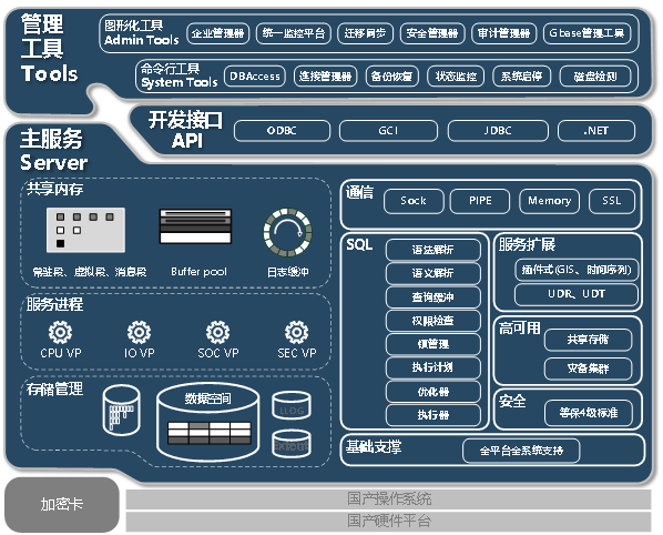 GBase 8s总体上由三大部分组成:管理工具、应用接口、数据库主服务。