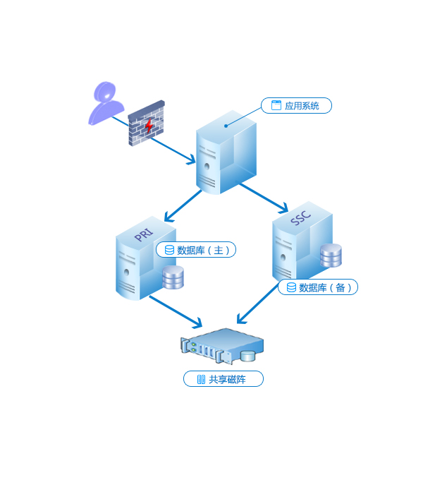 • 共享存储集群SSC(Shared storage cluster) 通过多个节点对外提供服务,保障系统高可用。数据保存在共享存储上,所有节点共享一份数据。当主节点出现故障时,备节点将自动、快速接管主节点服务。