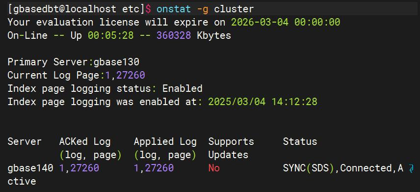 查看集群状态onstat -g clusteronstat -