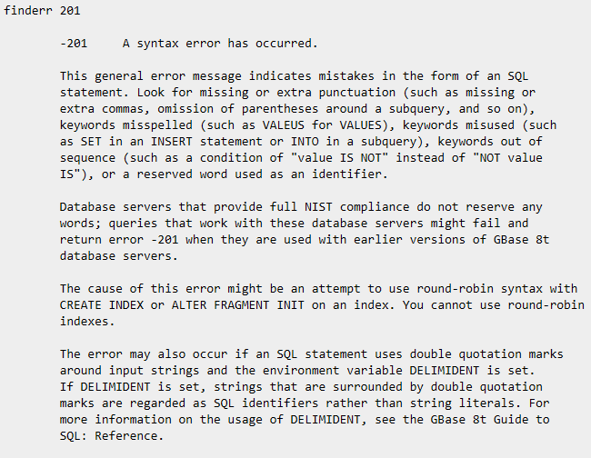 下面的命令显示了在 UNIX 或 Linux 平台上有关错误消息 -201 的信息: