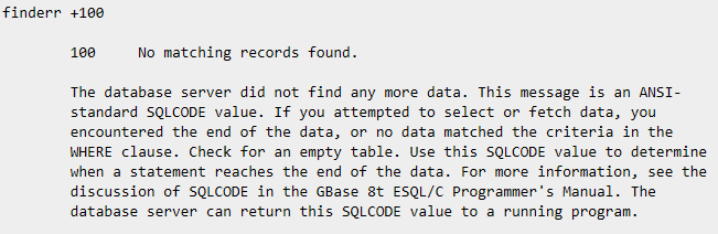 下列命令显示了有关错误消息 100 ,即对应于 SQLCODE 值为 100 的信息: