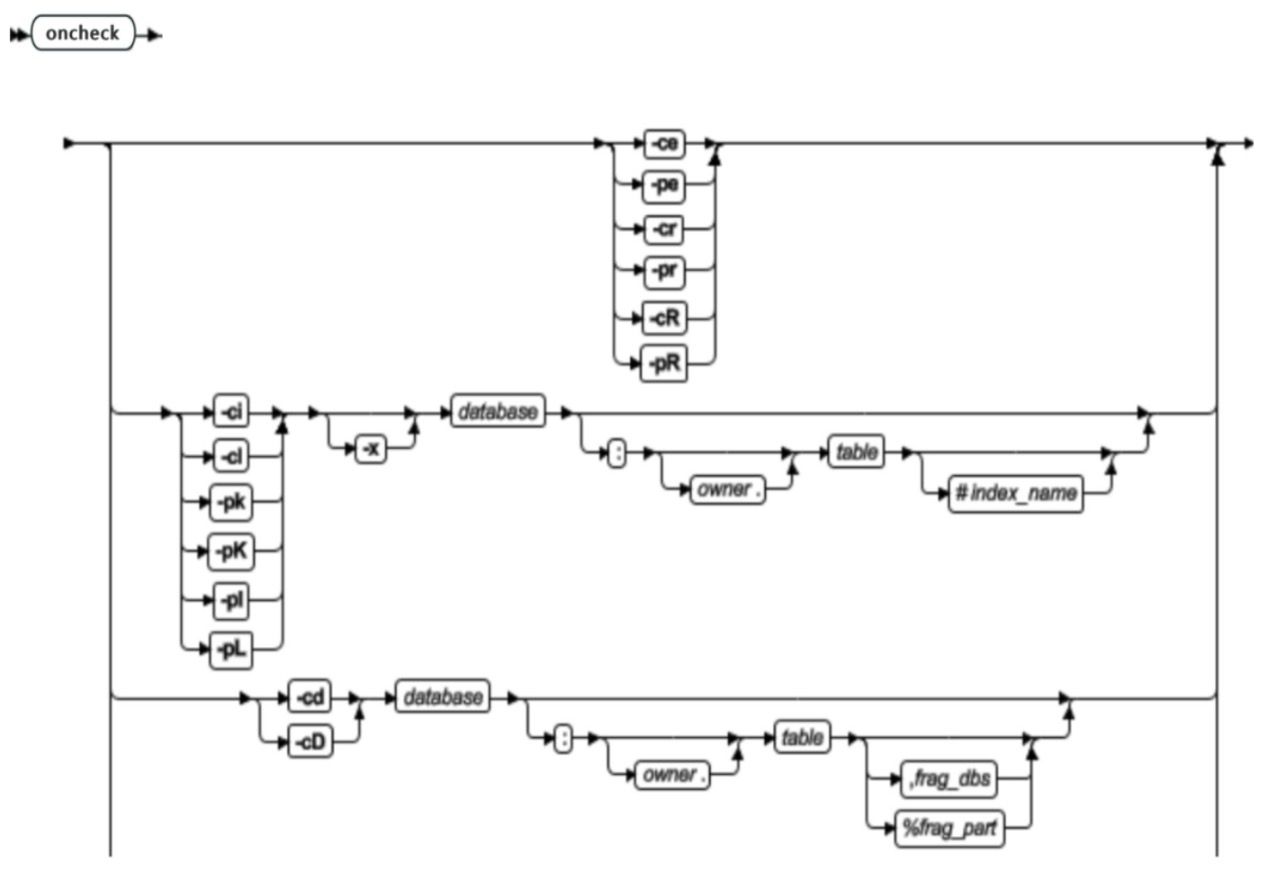 如果在索引检查过程中未在使用行锁的表上放置共享锁,那么 oncheck 命令无法进行准确的索引检查。要绝对确保完全的索引检查,可以用 -x 选项执行 oncheck 。使用 -x 选项, oncheck 在表上放置共享锁,这样其他用户就不能再检查完成之前执行更新、插入或删除。