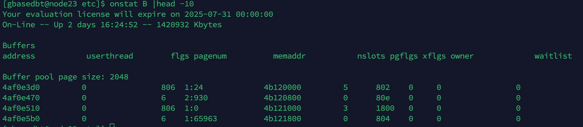 onstat -X 命令具有 waiter 字段,用以列出所有正在等待缓冲区的用户线程,而 onstat -b 和 onstat -B 命令包含 waitlist 字段,它显示正在等待缓冲区的第一个用户线程的地址。共享缓冲区的最大数量以 ONCONFIG 文件中 BUFFERPOOL 配置参数的 buffers 字段进行指定。