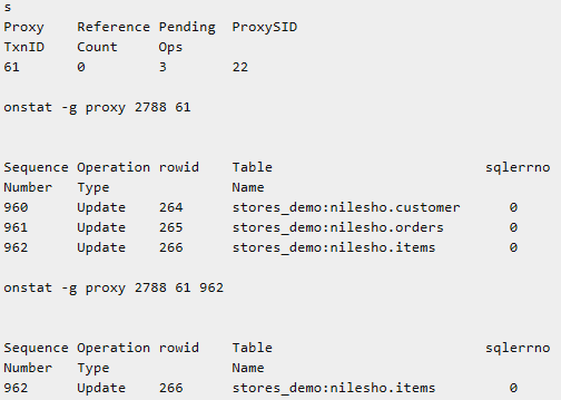 以下是当您退出 onstat 命令时,显示的返回码和消息的几行示例: