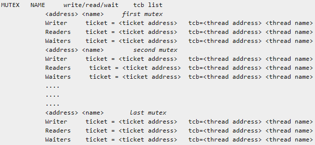 waiter: 列出正在等待缓冲区的所有用户线程的地址
