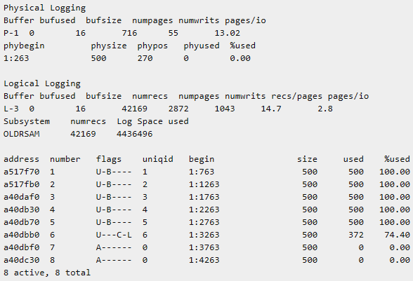 current logpos: 事务最近写入的日志的当前日志位置 (当事务回滚时,当前日志位置会回退直到它到达起始日志位置。 当到达起始日志位置,回滚结束。)