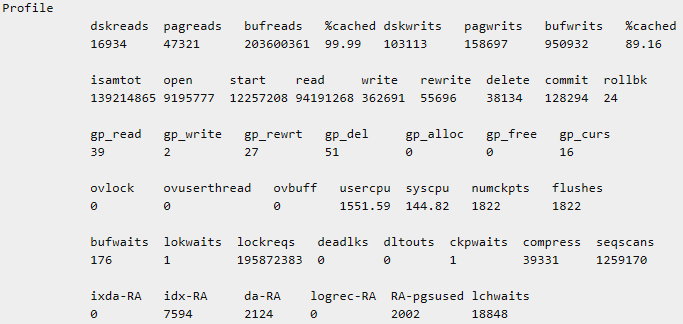 如果使用 onstat -z 命令重置和监视某些字段的计数,那么应了解概要文件计数对于数据库服务器管理的任何数据库中发生的所有活动都是增加的。任何用户都可以重设概要文件计数从而对另一用户正在执行的监视进行干预。