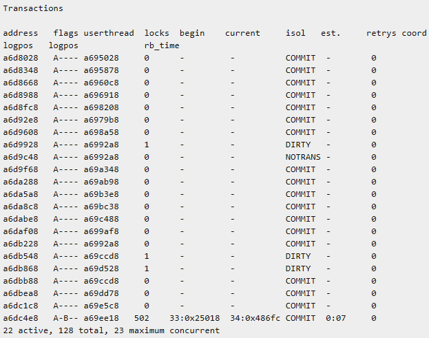 est. rb time: 服务器回滚该事务所需的估计时间。随着事务前进,该时间增长。如果事务回滚,那么该时间随着事务的展开而减少