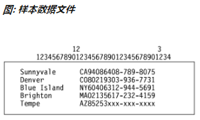 当无法用定界符来进行标识且必须使用输入行中的字符位置来标识输入数据字段时,请使用字符位置格式的 FILE 语句。例如:使用此形式来指示第一输入数据字段从字符位置 1 开始并继续直到字符位置 20。如果必须将字符串转换为空值,您也可使用此形式。例如:如果输入数据文件使用空格序列来指示空值,那么如果您希望指示 dbload 在出现空格字符串的每个地方替换为空时,您必须使用此形式。
