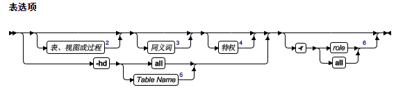 -p all显示指定数据库、表或视图的所有用户或指定表的所有角色的 GRANT 语句。无。