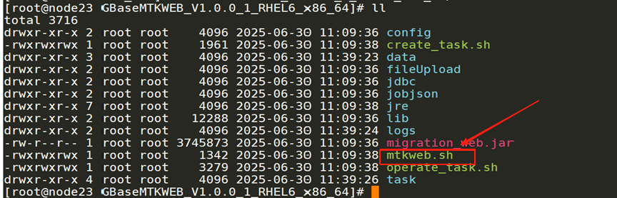 解压MTK安装包:解压后包含config、data、jdbc、jre 、logs、task、fileUpload 、jobjson 、 lib目录,mtkweb.sh、create_task.sh、operate_task.sh可执行文件及migration_web.jar文件。