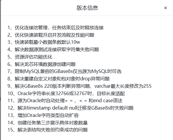 1.0.0_4版本新增创建任务第三步展示具体对象数量、Oracle字符类型自动扩容功能。