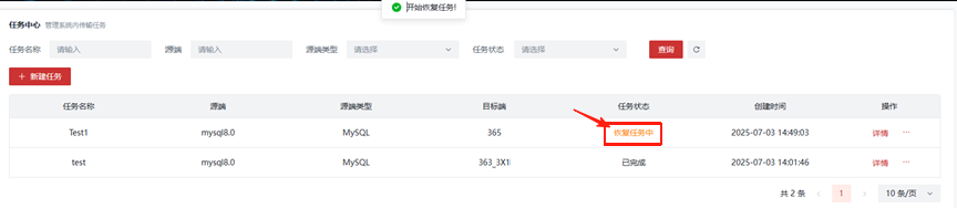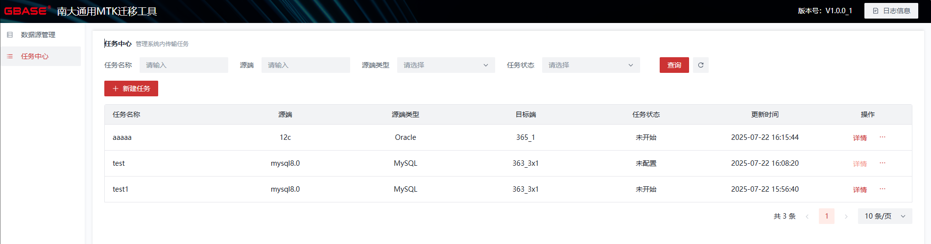 任务中心用于创建迁移任务,可以看到所有的迁移任务列表。