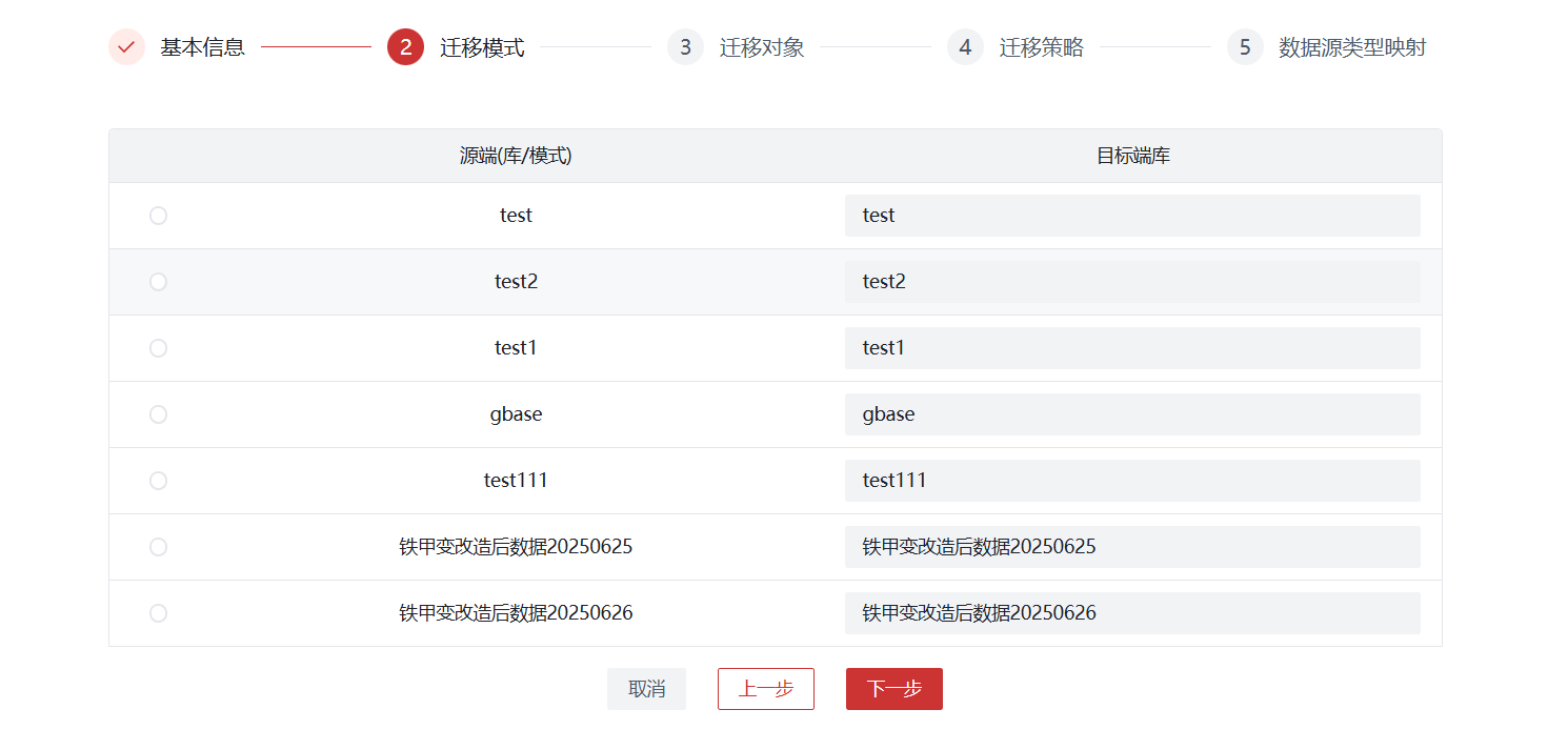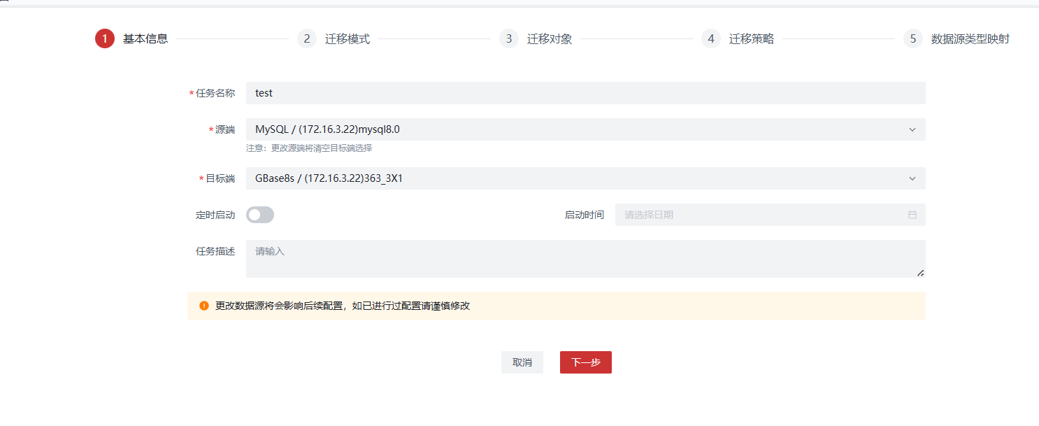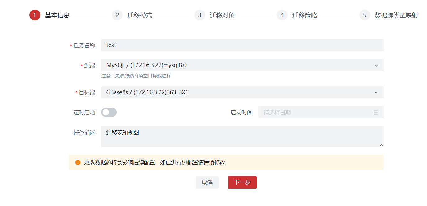 目标端:选择您要往哪个数据源迁移,目前仅支持GBase 8s,必填项