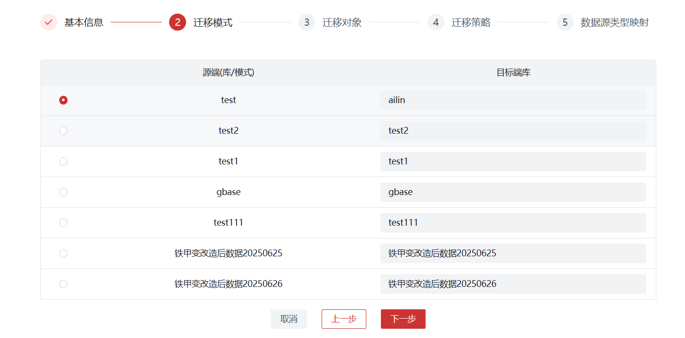 选择您要迁移的源端数据库,配置完成后,点击“下一步”按钮