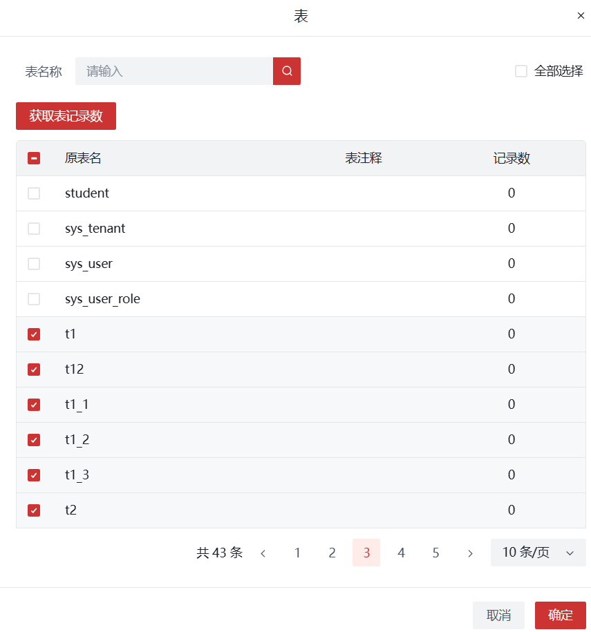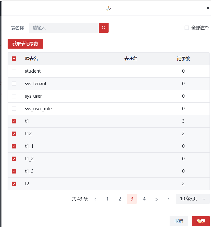 点击“获取表记录数”按钮,可以查看您选中表的数据量,如下图所示: