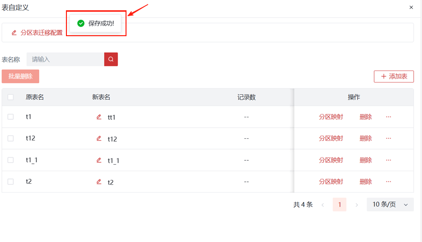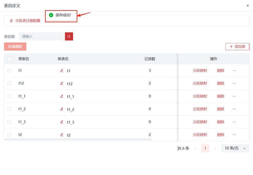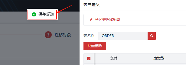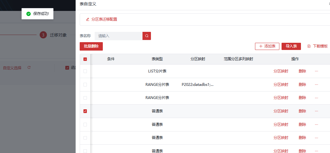 选择您要迁移的部分对象后,点击“确定”按钮,会提示“保存成功”弹窗,并在列表中看到您选择的部分对象,如下图所示: