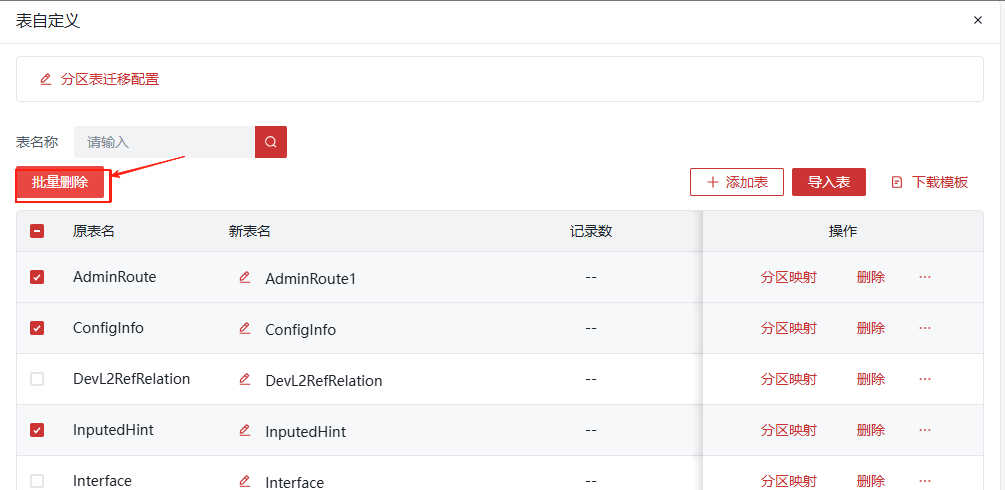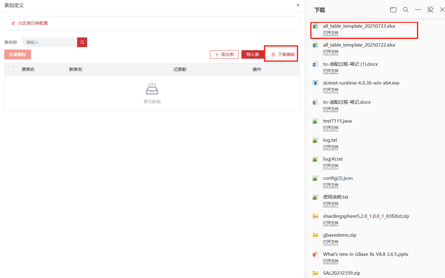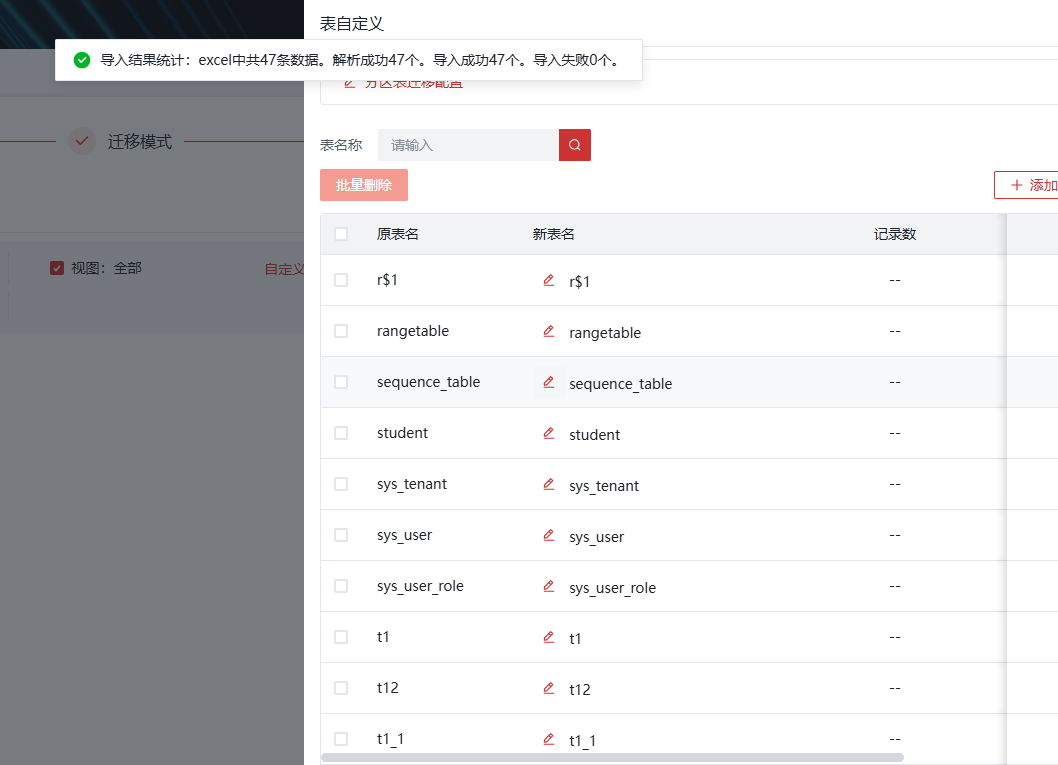 您也可以通过“导入表”导入您想迁移的表名,目前支持的文件格式为xlsx和xls。建议您先下载模板,然后留下您想要导入的表名,保存后上传。