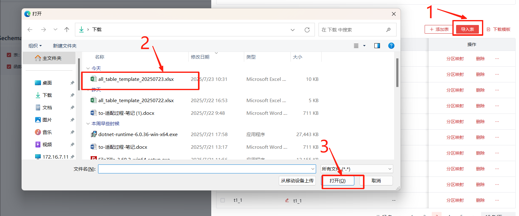 筛选完您要导入的表名并保存后,点击“导入表”,会出现“打开”弹窗,您可以选择您想要导入的文件,选择后,点击“打开”,进行导入,如下图所示:
