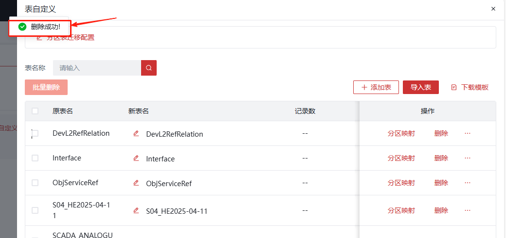 选择“确认”按钮,会提示“删除成功”弹窗,并在列表中删除您选中的对象,如下图所示: