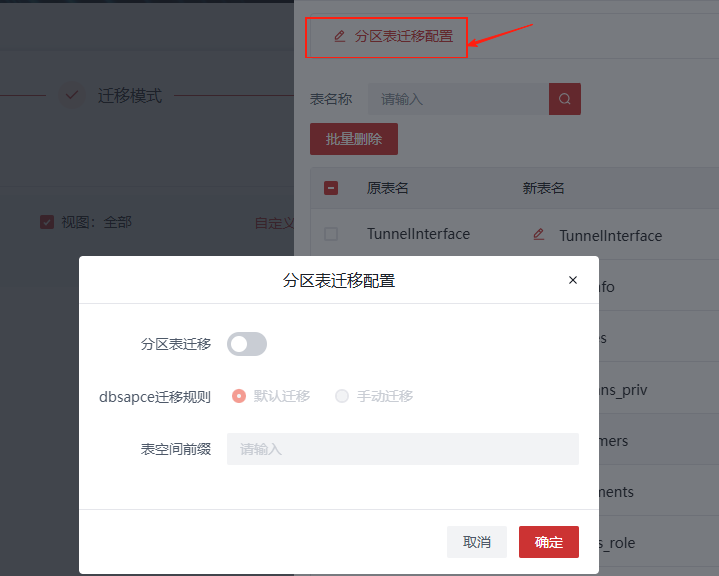 针对分区表,您可以自定义分片规则,点击“分区表迁移配置”按钮,会出现“分区表迁移配置”弹窗,如下图所示: