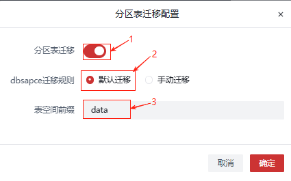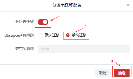 打开“分区表迁移”开关,并选择“默认迁移”或“手动迁移”