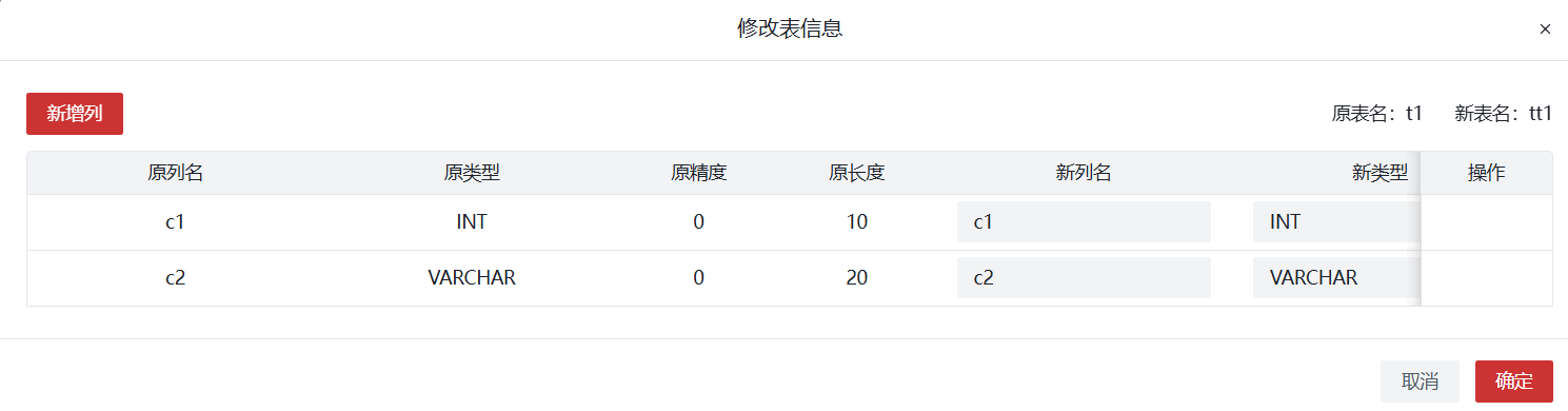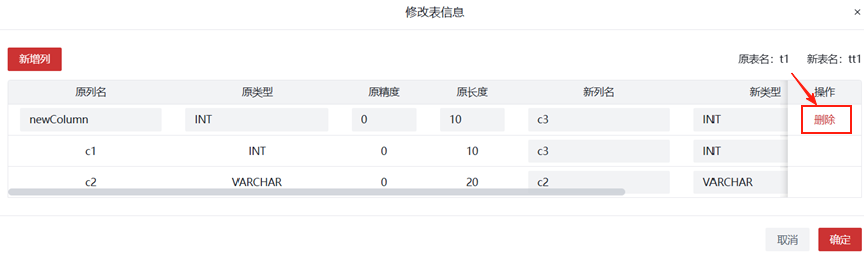 修改列信息后,可以点击“取消”按钮,取消修改操作,点击“确定”按钮,保存修改操作