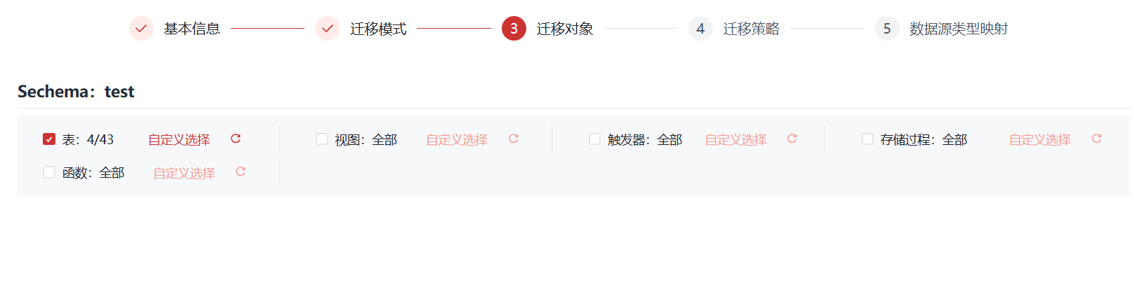 点击“下一步”按钮后,可以看到“迁移对象”弹窗,如下图所示: