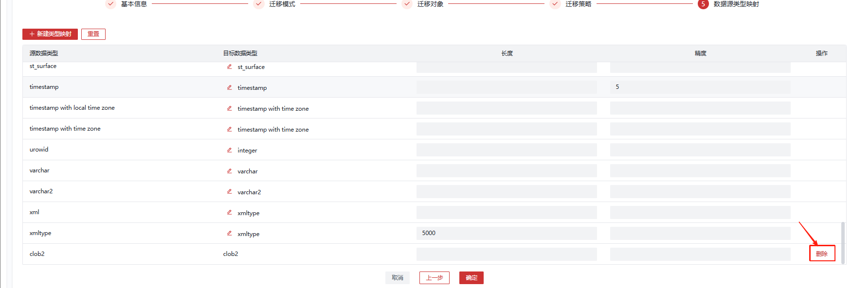 目前仅表支持设置迁移策略,其他对象仅支持“删除”操作。