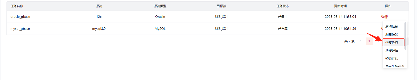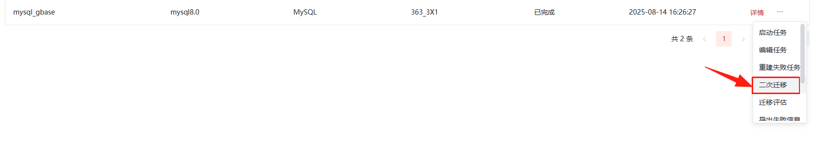 您可以选择要启动的任务名称,鼠标点击“。。。”按钮后,选择“二次迁移”,如下图所示: