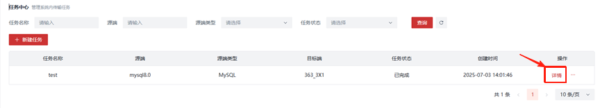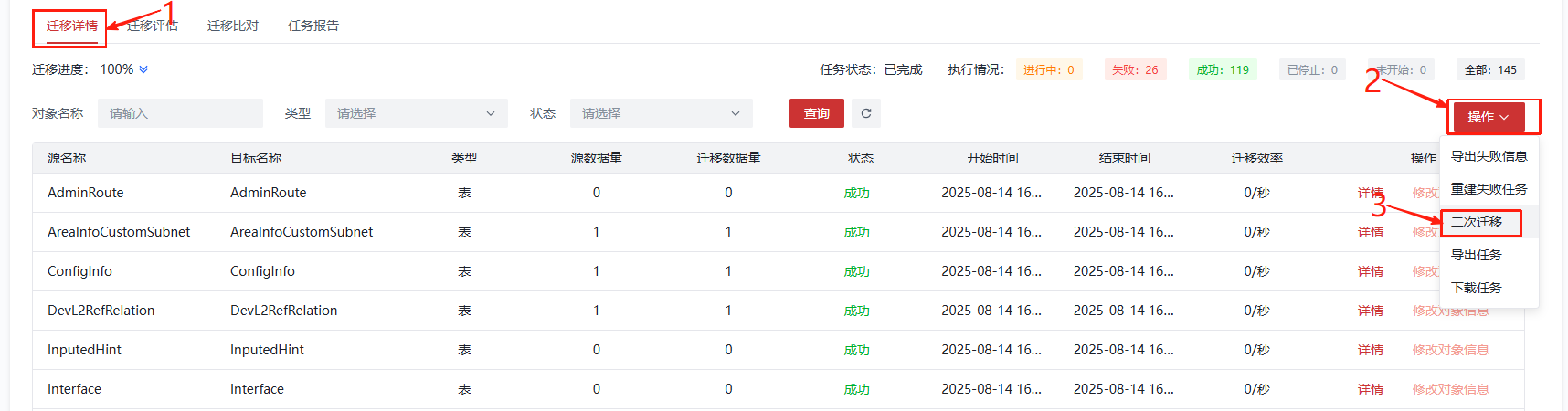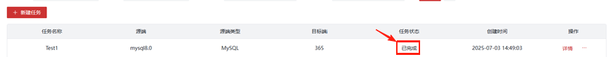 二次迁移执行完成后,任务状态会变为“已完成”,迁移结果需要在详情中查看,具体操作请查看任务详情章节