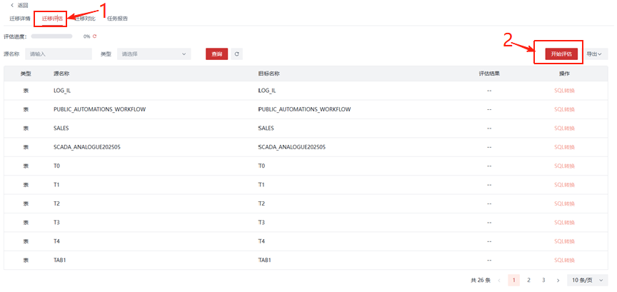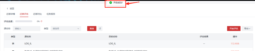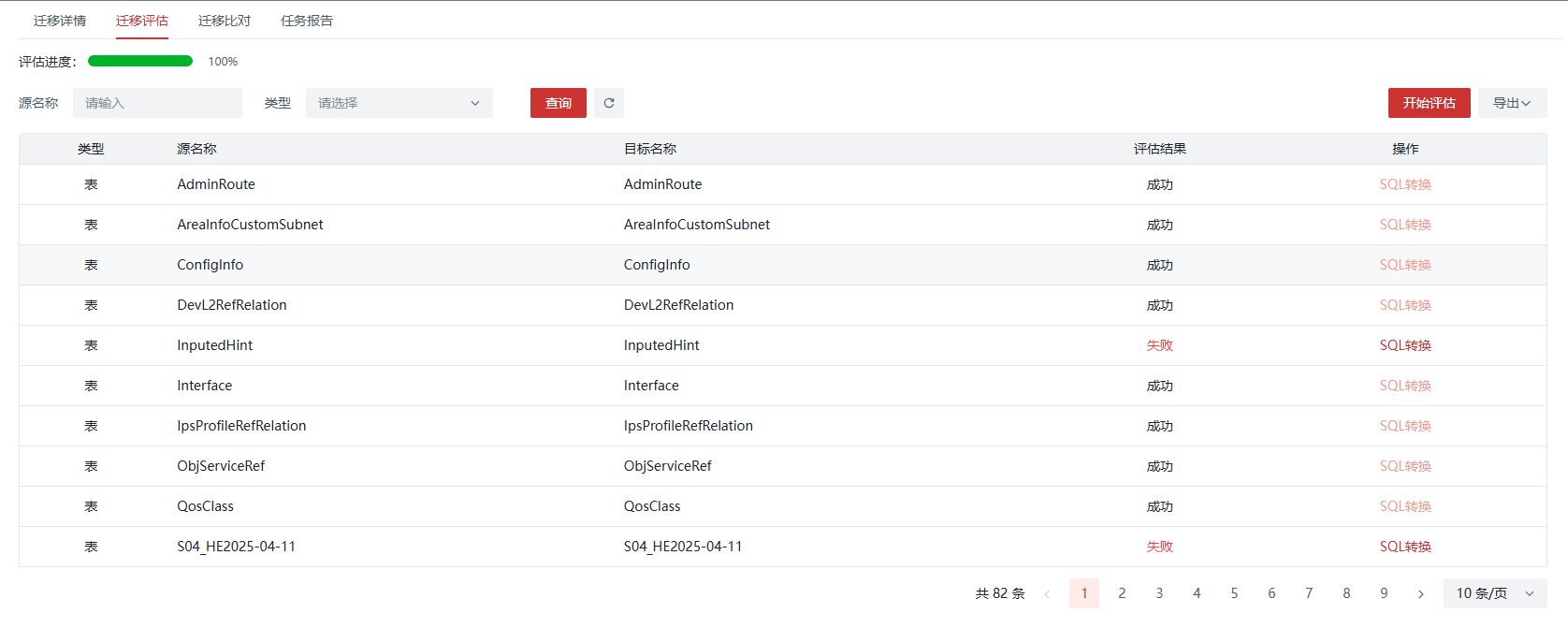 - 评估结果:您迁移评估中所包含全部对象的评估结果,分为“成功”和“失败”两种状态