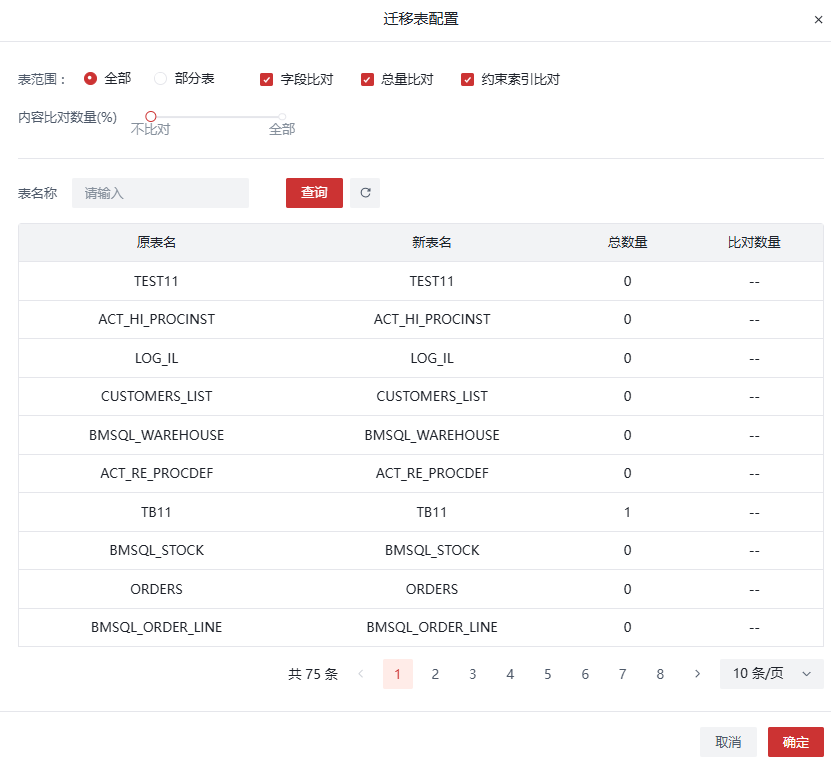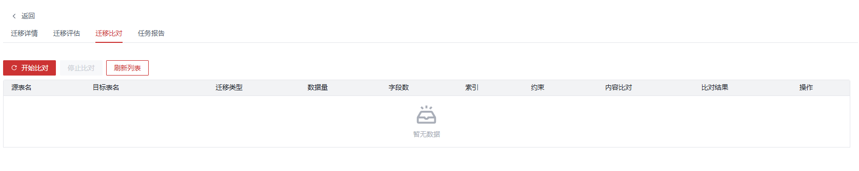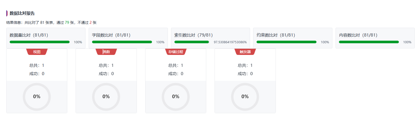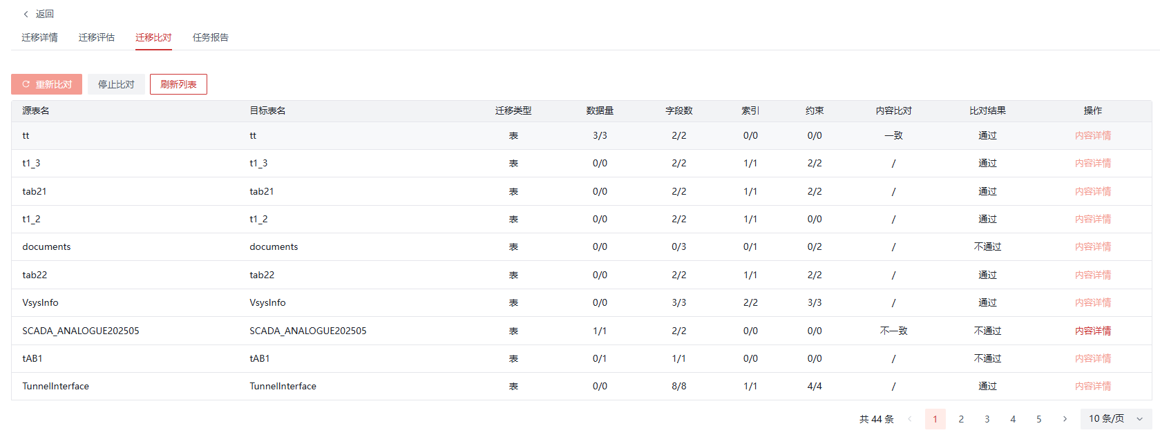 比对结束后,会在“迁移对比”页面,看到比对结果,如下图所示:
