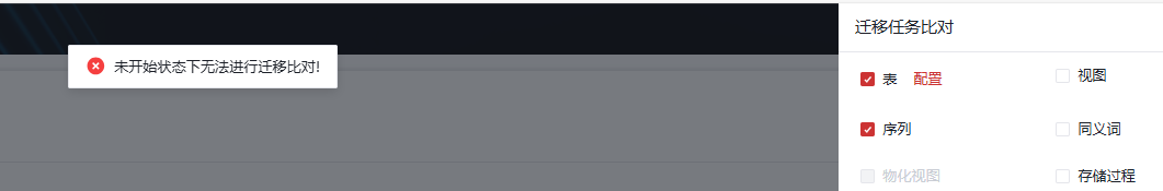 如果您想比对的任务还未进行迁移,则会提示弹窗“未开始状态下无法进行迁移比对”,如下图所示: