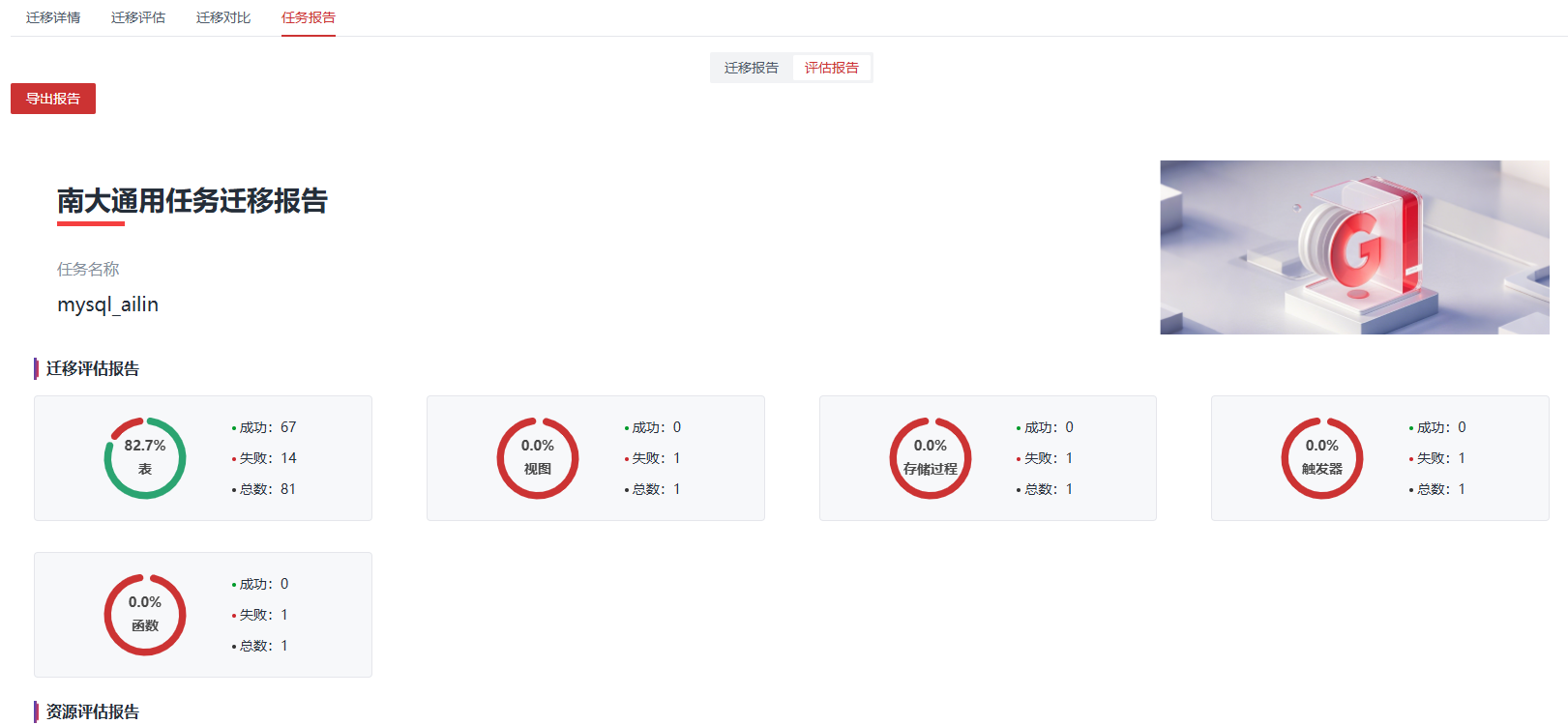 资源评估完成后,您可以在任务报告中查看评估结果,具体操作请查看任务详情章节。