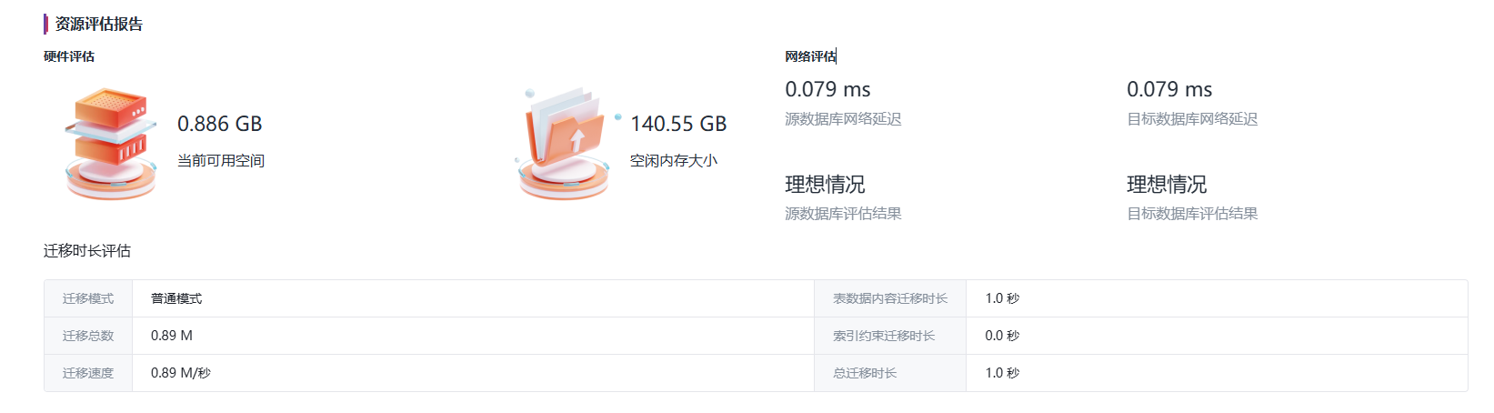 - 表数据内容迁移时长:通过预迁一张表数据然后预估总数据迁移时长