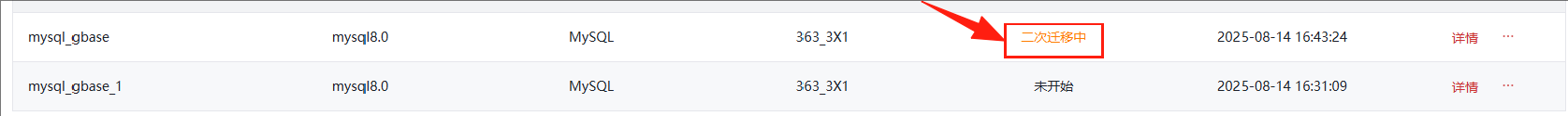 点击“确认”按钮后,可以看到任务状态变成“二次迁移中”,说明二次迁移已经成功启动,如下图所示: