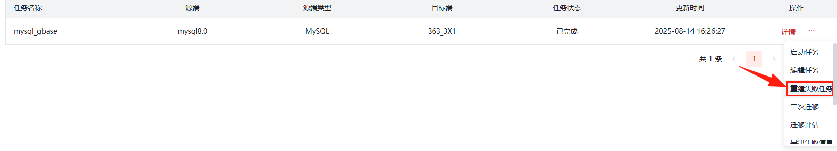 您也可以在任务详情中,选中“操作”===》“重建失败任务”进行失败对象任务重建的操作。