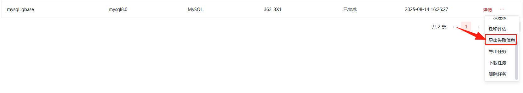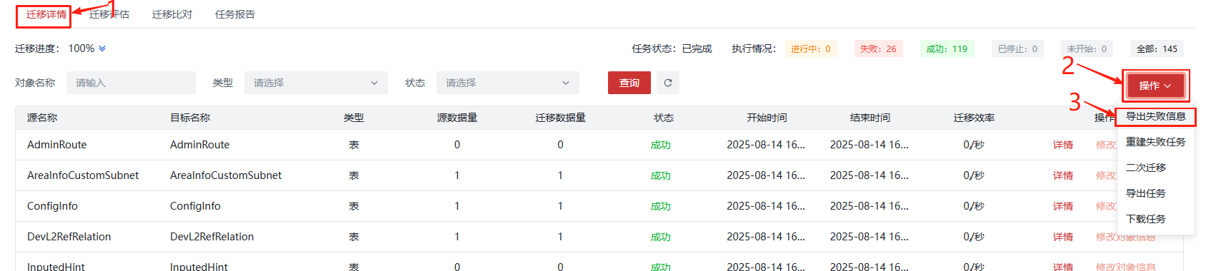 使用本功能,您可以对已经迁移完的任务进行失败对象的任务导出。