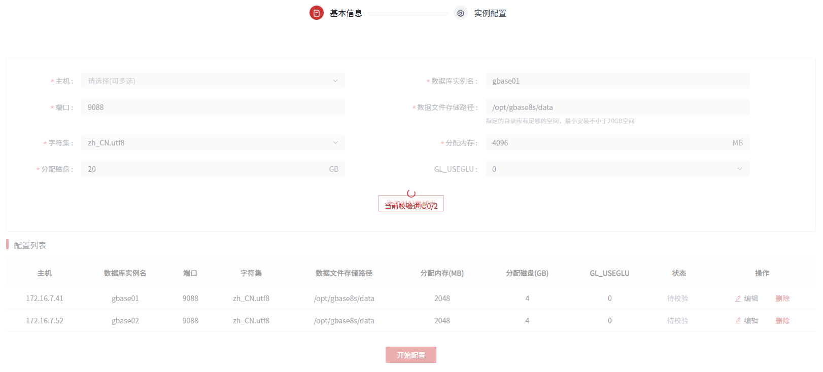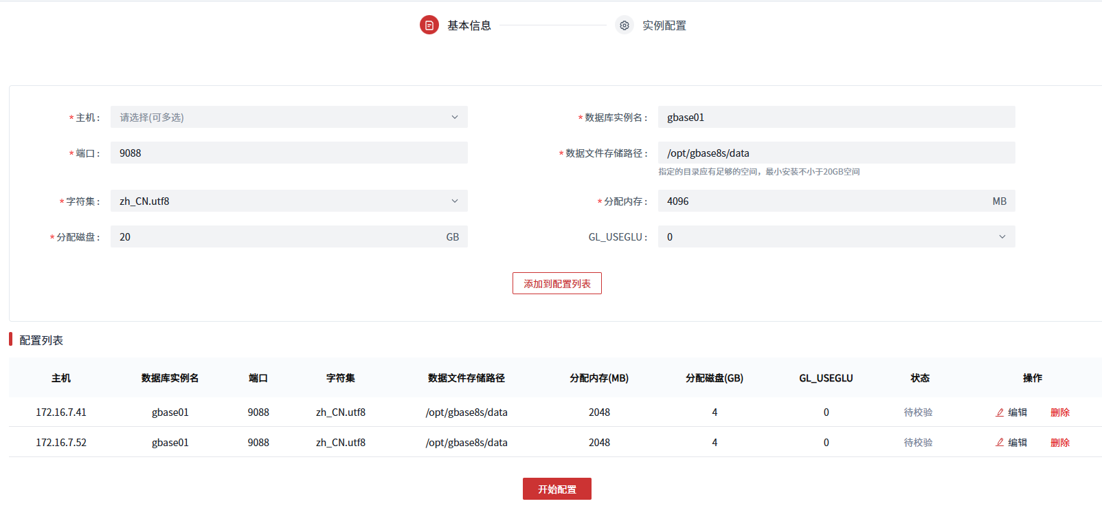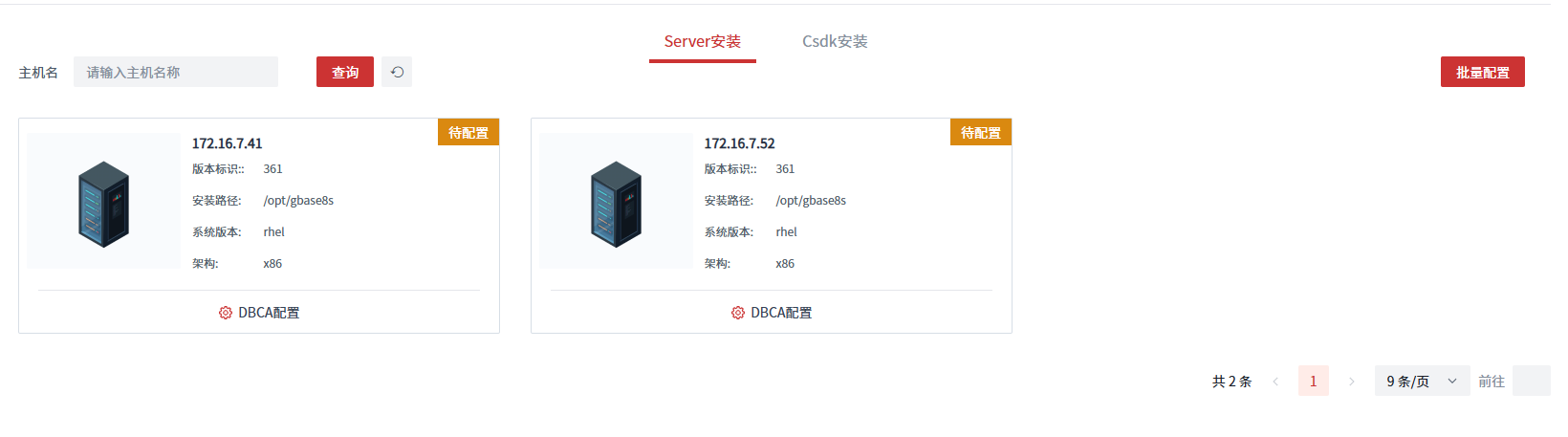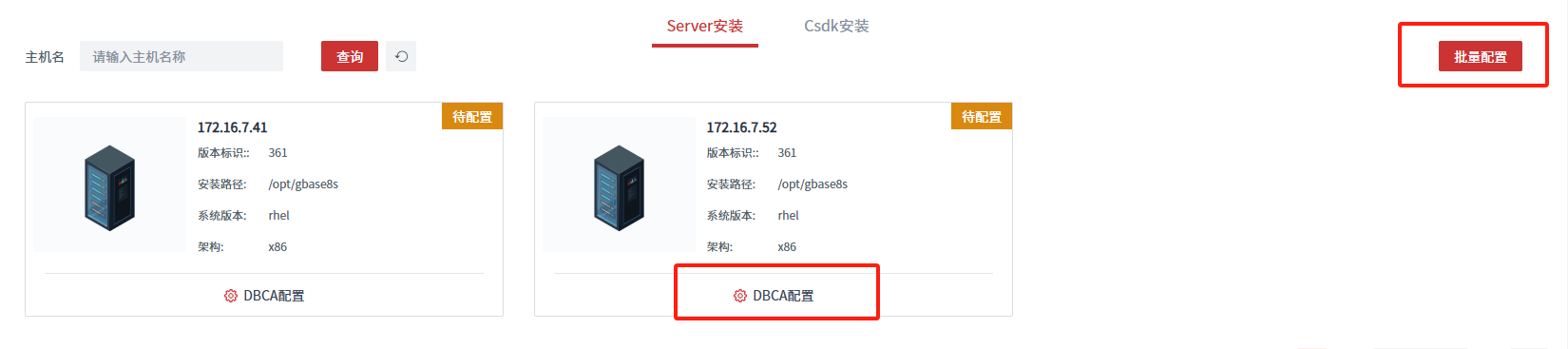 点击安装部署首页server安装的【DBCA配置】,实现数据库实例的初始化,支持批量配置。